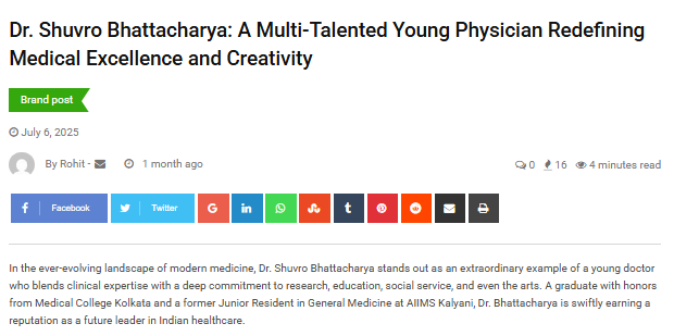 Dr. Shuvro Bhattacharya: A Multi-Talented Young Physician Blending Clinical Excellence, Research, and Creative Expression